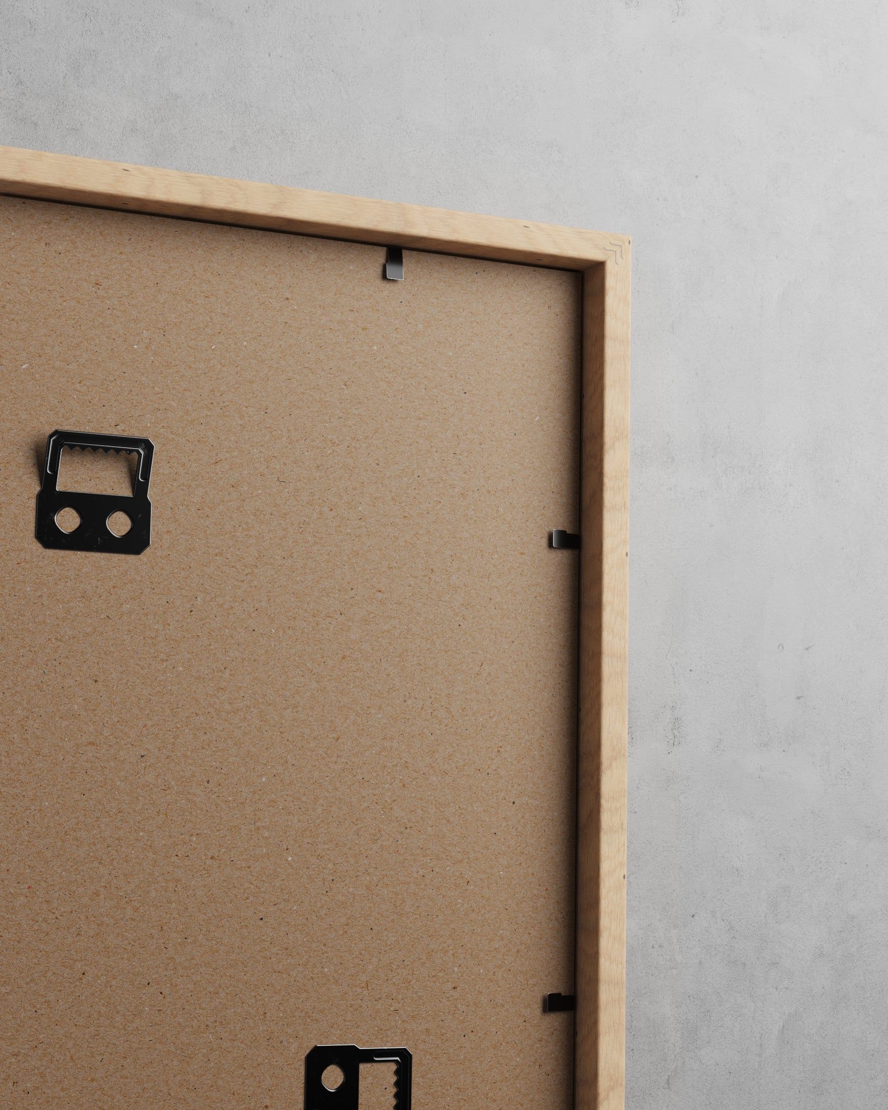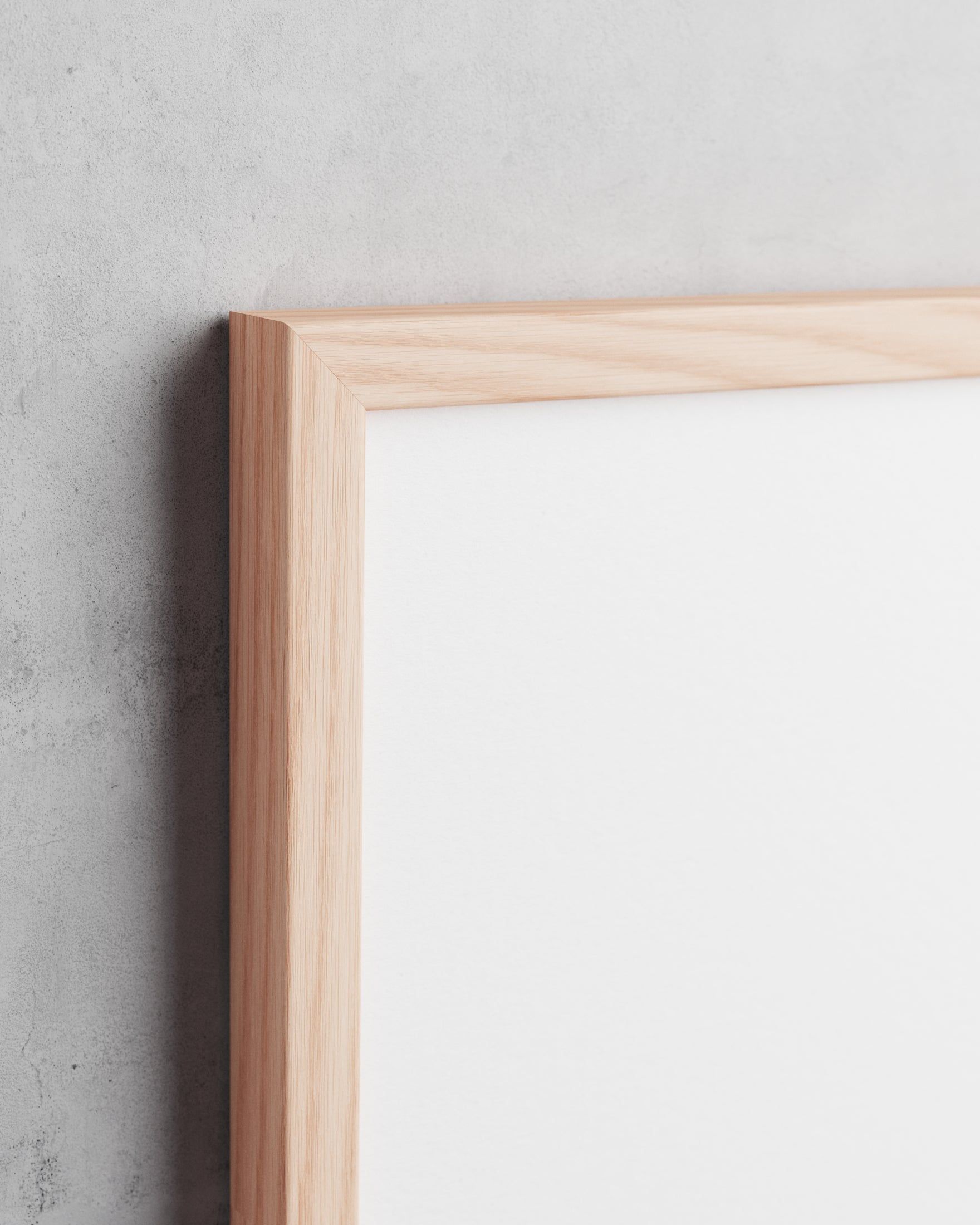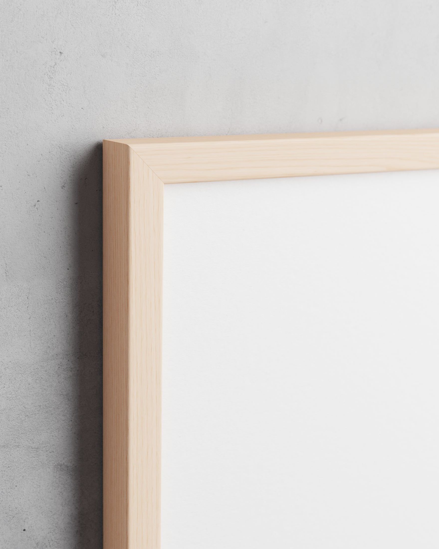 Berlin har en flad, rektangulær profil med rene linjer og en diskret arkitektonisk tilstedeværelse. Med 12 mm dybde og 18 mm bredde fremstår rammen slank forfra, samtidig med at den tilføjer visuel dybde fra siden – den løfter værket let og giver det plads, uden at tage opmærksomheden.