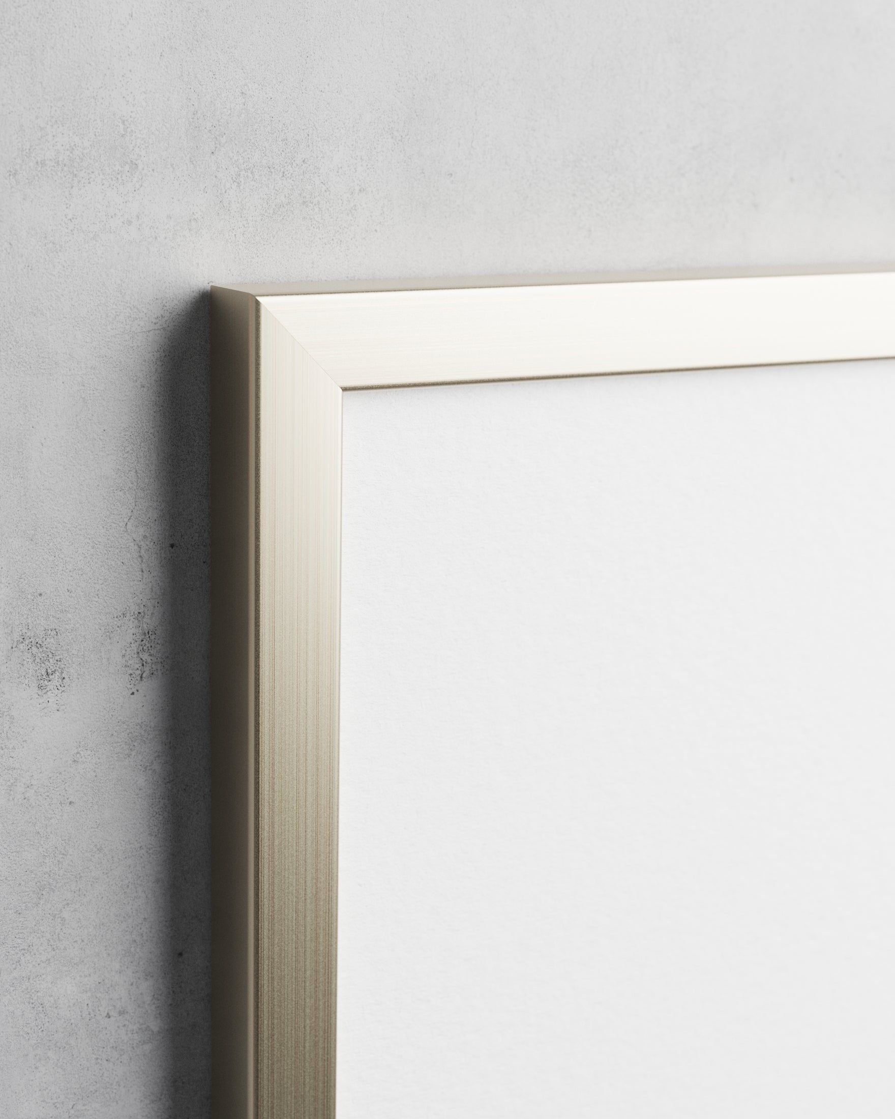 Den champagnefarvede finish tilfører subtil elegance – perfekt til sofistikerede interiører, gallerivægge eller sarte kunsttryk.