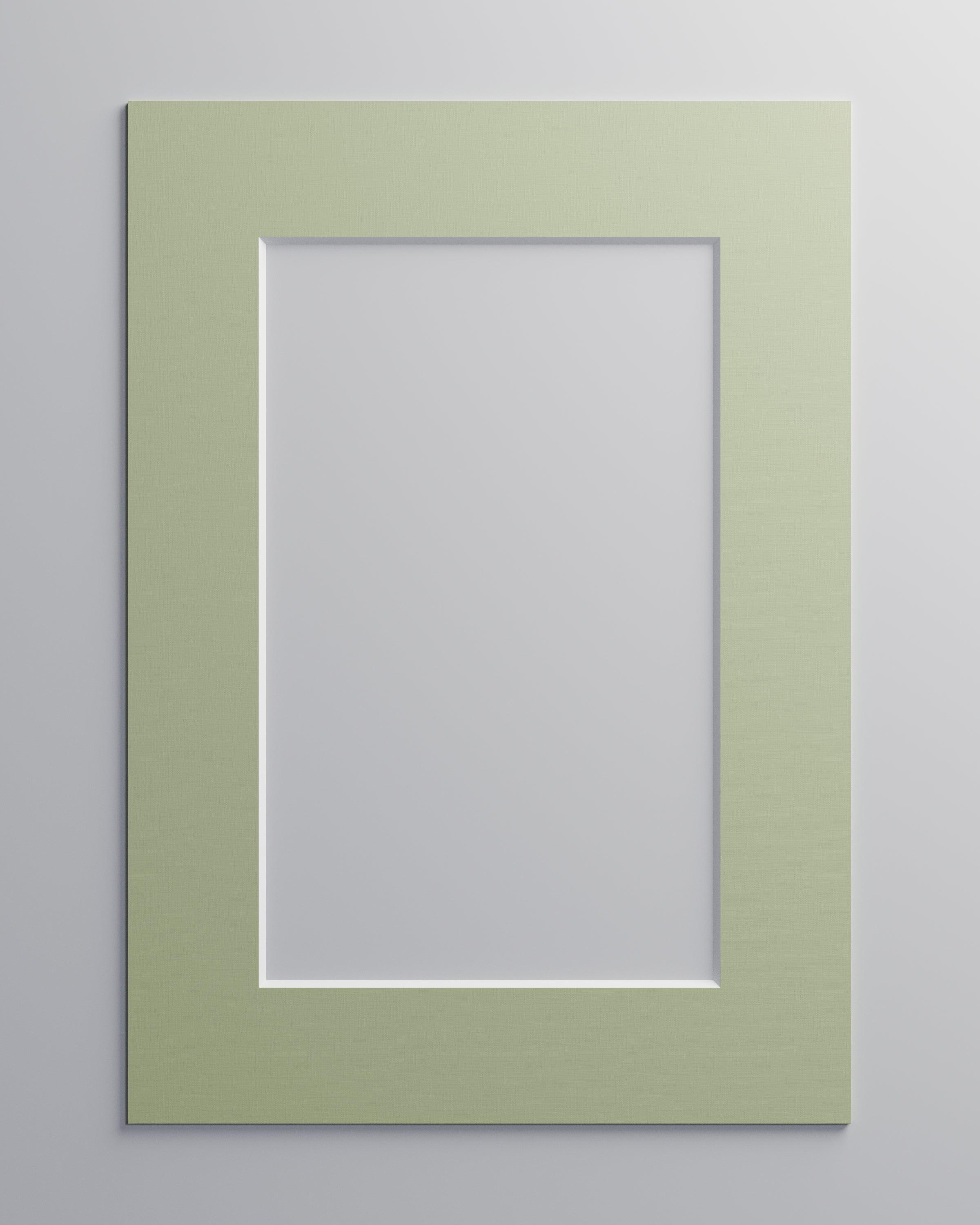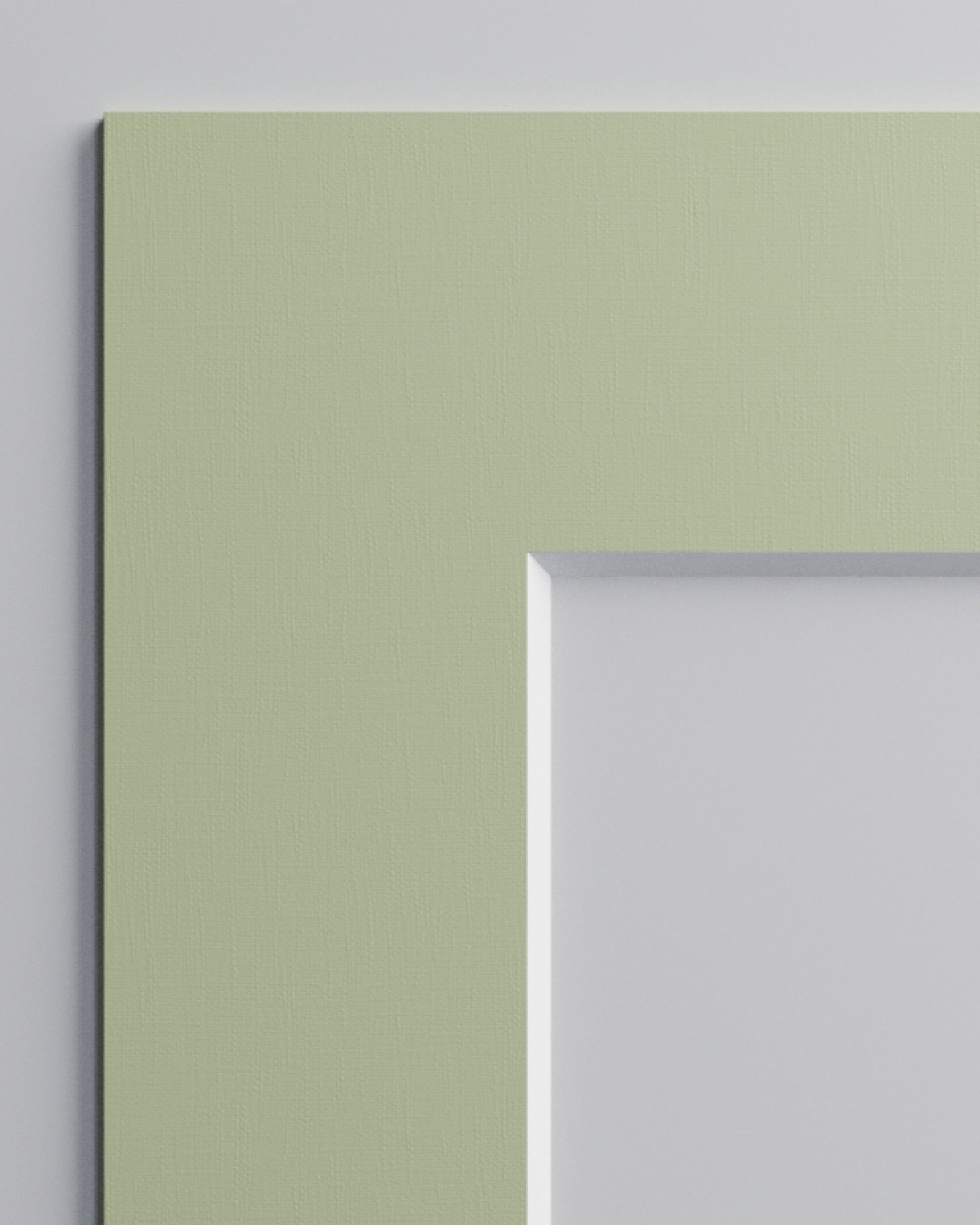 En afdæmpet grøn passepartout, der bringer ro og karakter til din indramning. Fremstillet i 1,5 mm syrefrit karton med en 45-graders skæring, der afslører en hvid kerne og indrammer motivet med en lys og diskret kant.