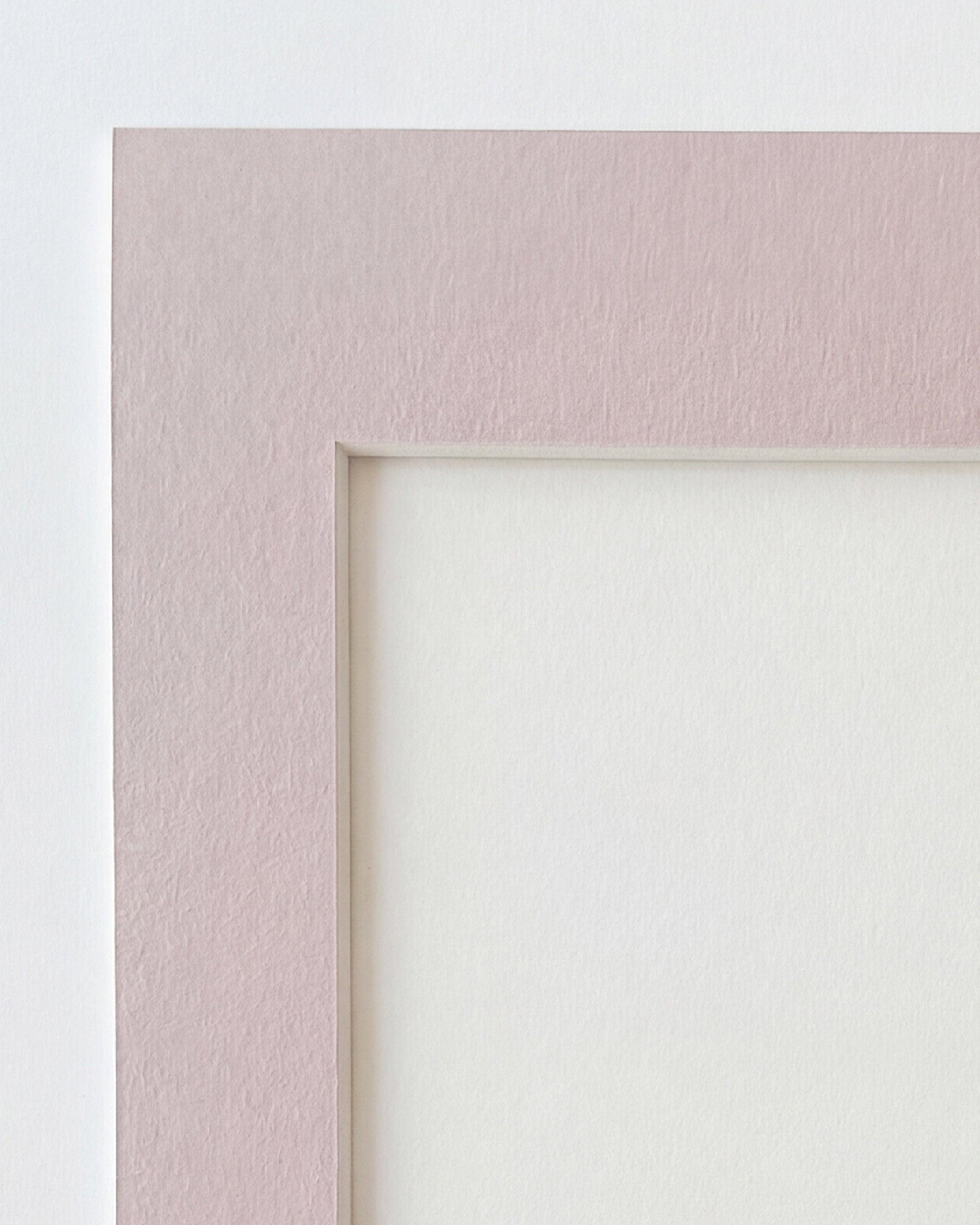 PassepartoutDenne bløde rosa passepartout har en klassisk og mild tone, der tilfører en sart varme til dit motiv. Den har en struktureret overflade, som opleves på tæt hold. Den er fremstillet i 1,5 mm syrefrit karton og skåret med en 45-graders vinkel, der afslører en ren hvid kerne, som tilføjer kontrast og dybde omkring motivet.