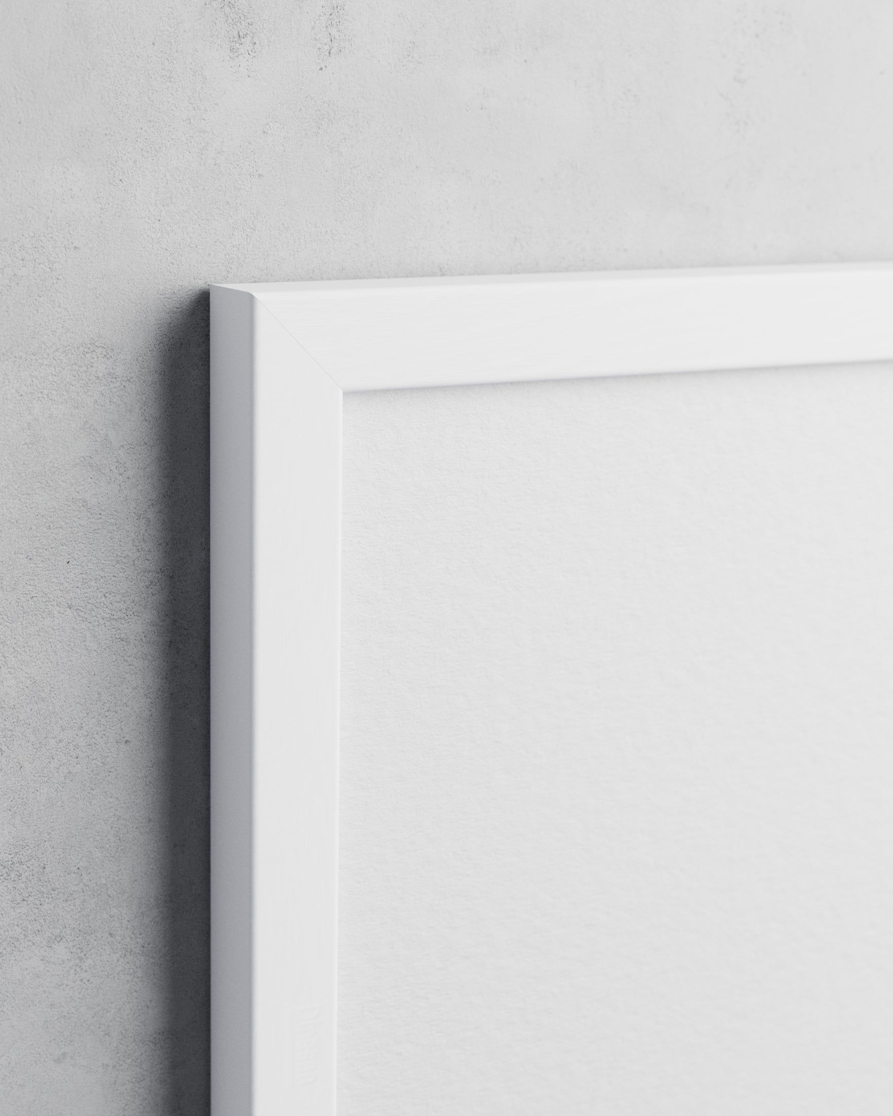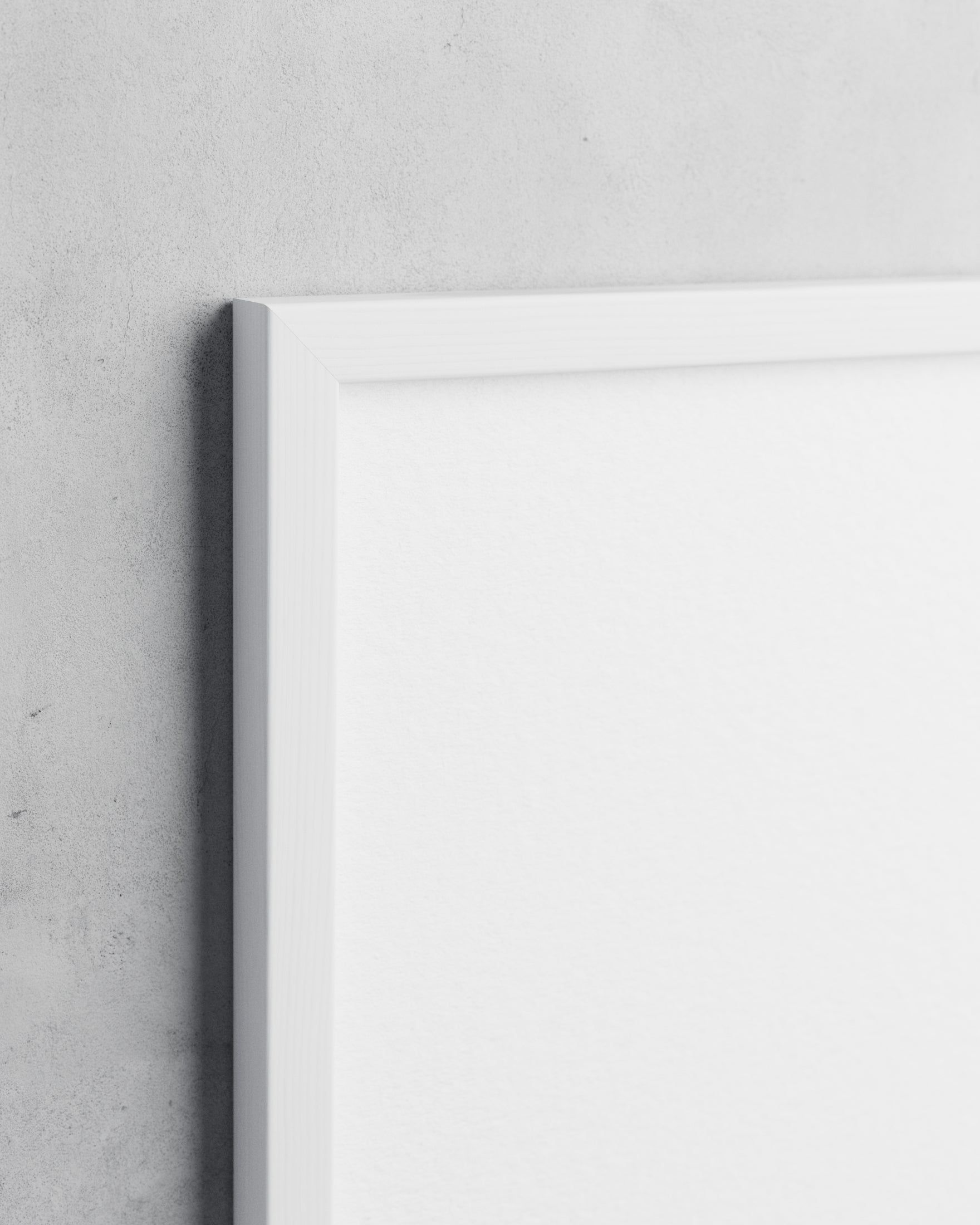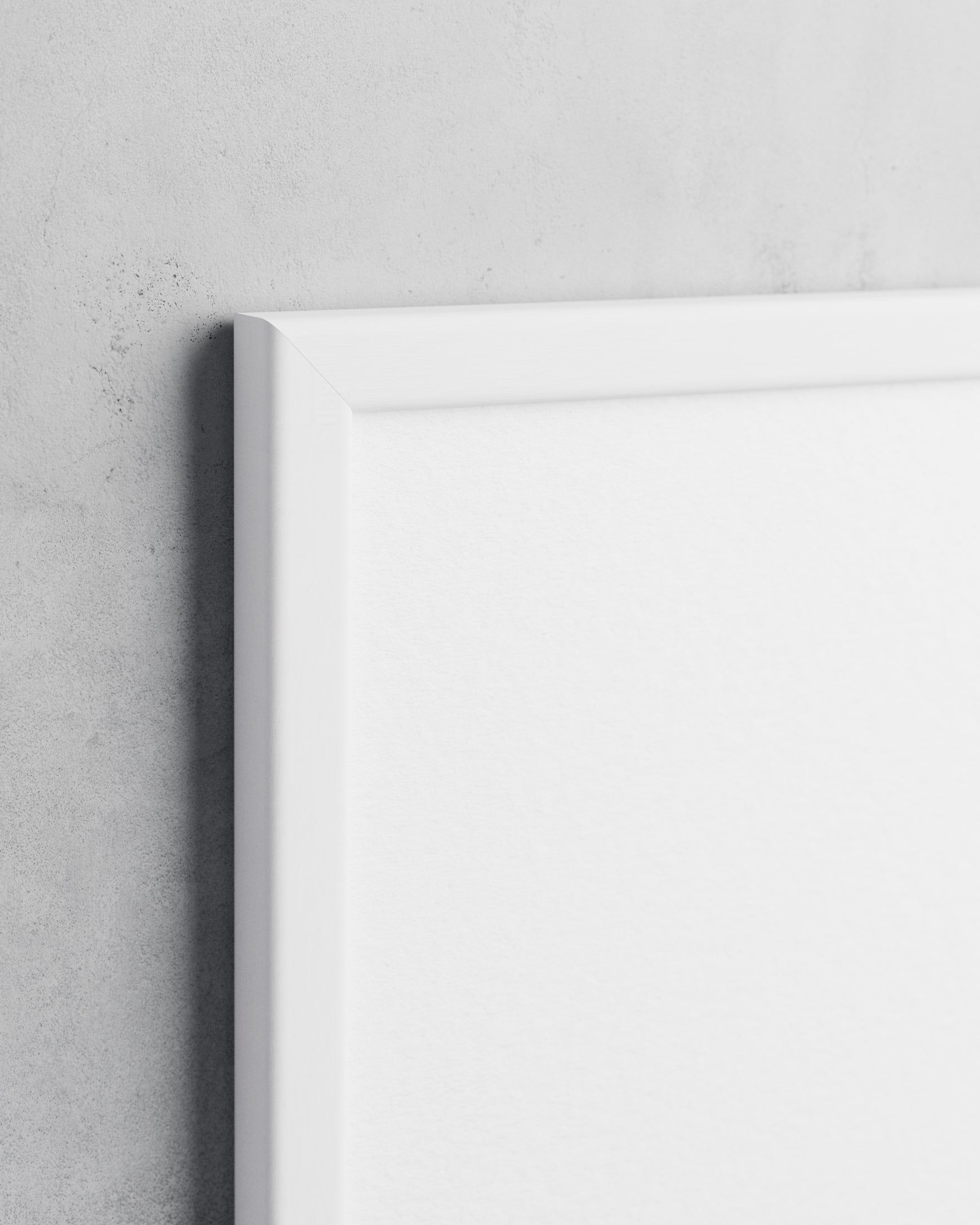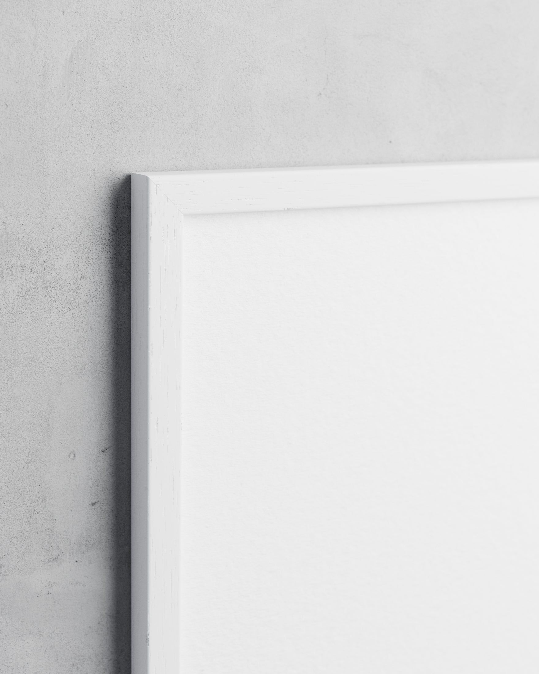Den hvide finish tilfører lys og kontrast og passer perfekt til både sort/hvide værker og farverig kunst.