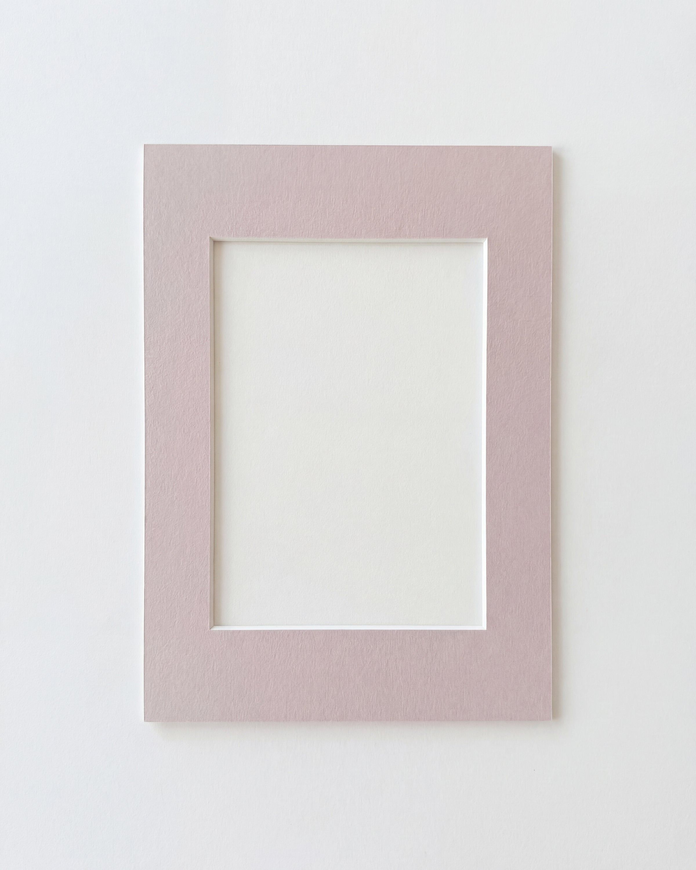 MountsThis dusty pink mount features a muted, darker tone with sophisticated undertones, adding elegant depth and a modern aesthetic to your framing. It has a textured surface that’s noticeable up close and is made from 1.5 mm acid-free cardboard. The 45-degree angled cut exposes the white core, framing the image with a clean border and creating depth.