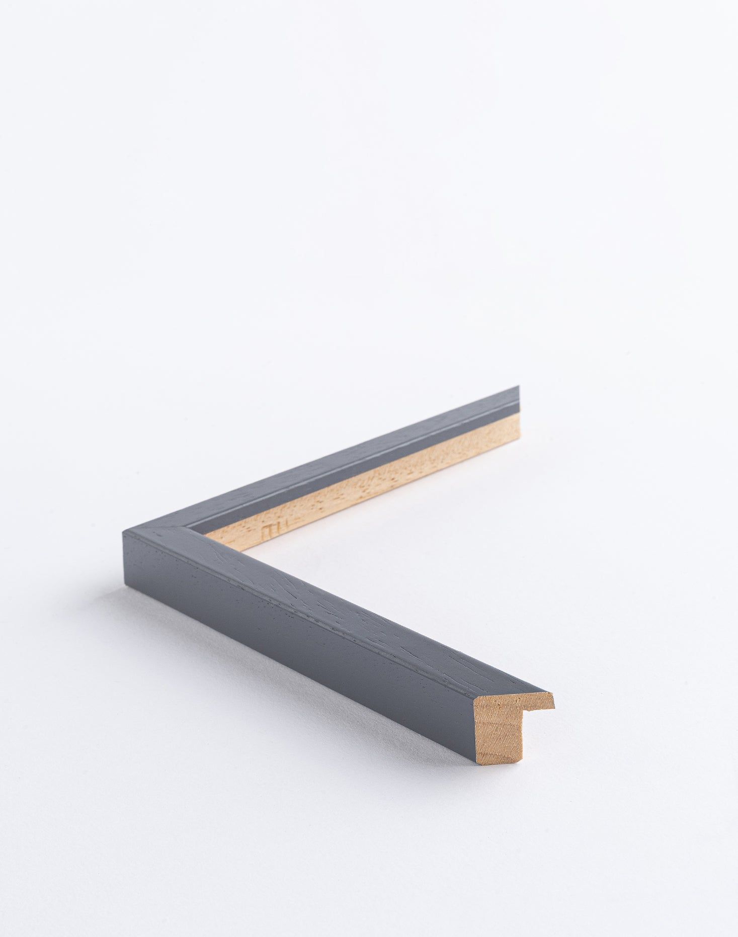 This frame sample is a small corner piece of the Berlin profile in Nordic Gray.