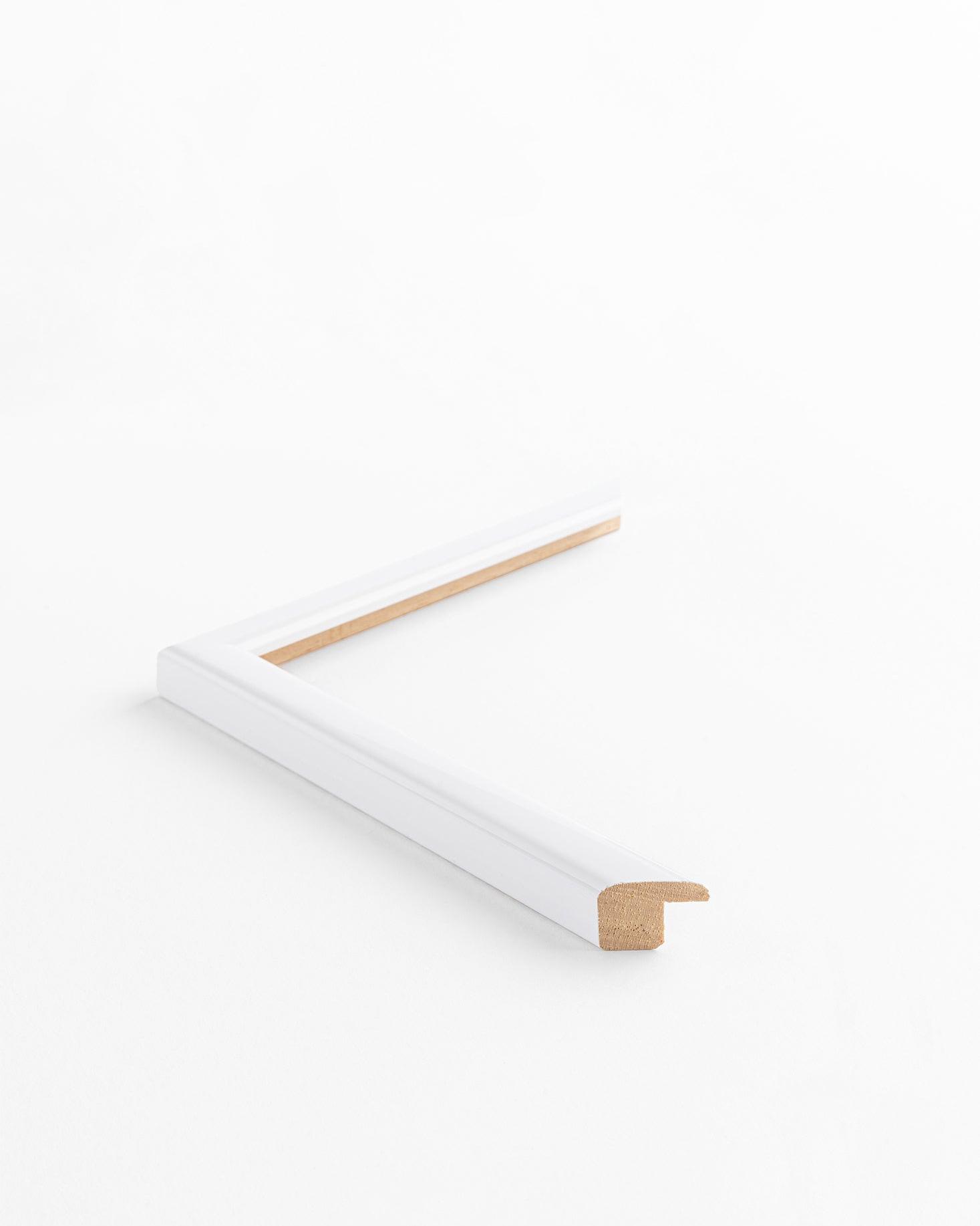 This frame sample is a small corner piece of the Stockholm profile in White – Gloss.